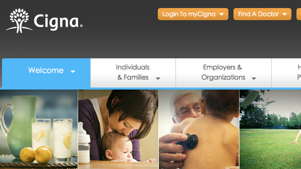 尽管信诺保险集团提供了上图所示的彩色版本的Logo,不过单色的版本使用得更加广泛,比较在企业官网(下图)。